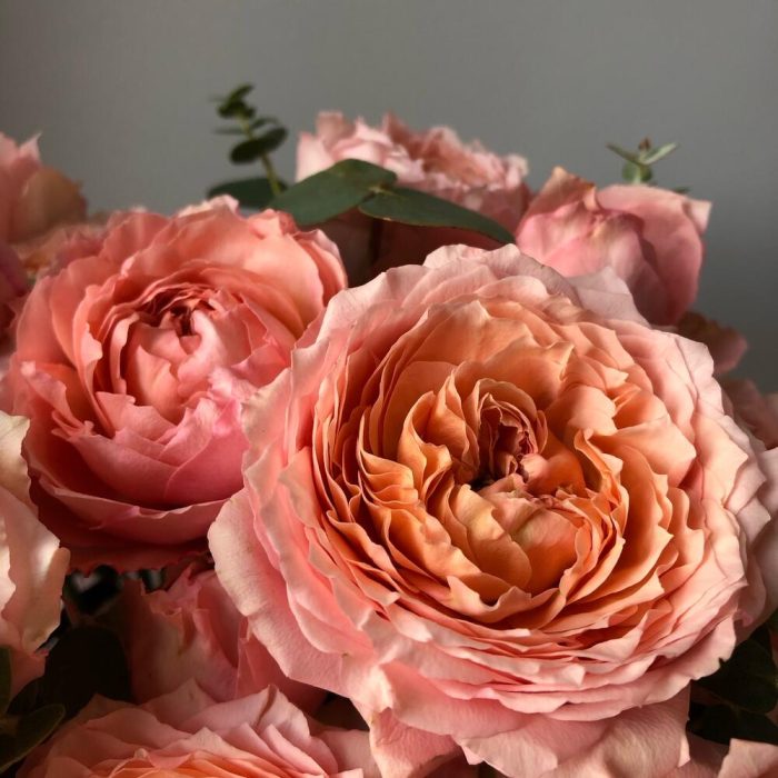 Пионовидные розы розово-персиковых оттенков с ароматным эвкалиптом Флористы студии Peony собрали данную композицию с огромным трепетом из самых свежих цветов Цветы в коробке – это удобно, так как для них не нужна ваза. Цветы находятся в специальной флористической губке, которую необходимо поливать раз в два дня В подарок к композиции прилагается открытка с вашими пожеланиями и инструкция по уходу за цветами.