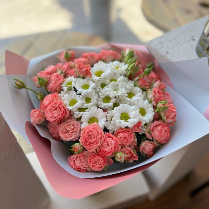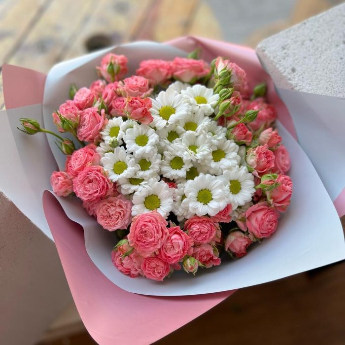 Гвоздики, Кустовые розы, Пионовидные розы, Розы