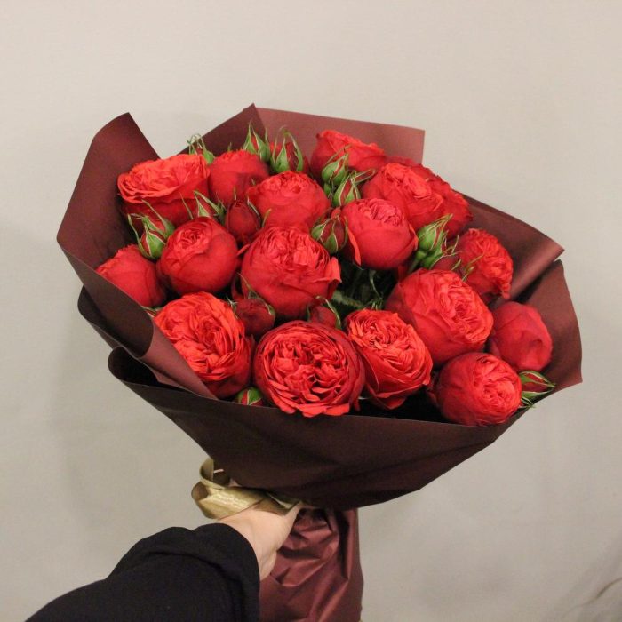 Роза пионовидная Red Piano – 19 шт.Упаковка дизайнерская – 2 шт.Лента атласная – 1 шт.