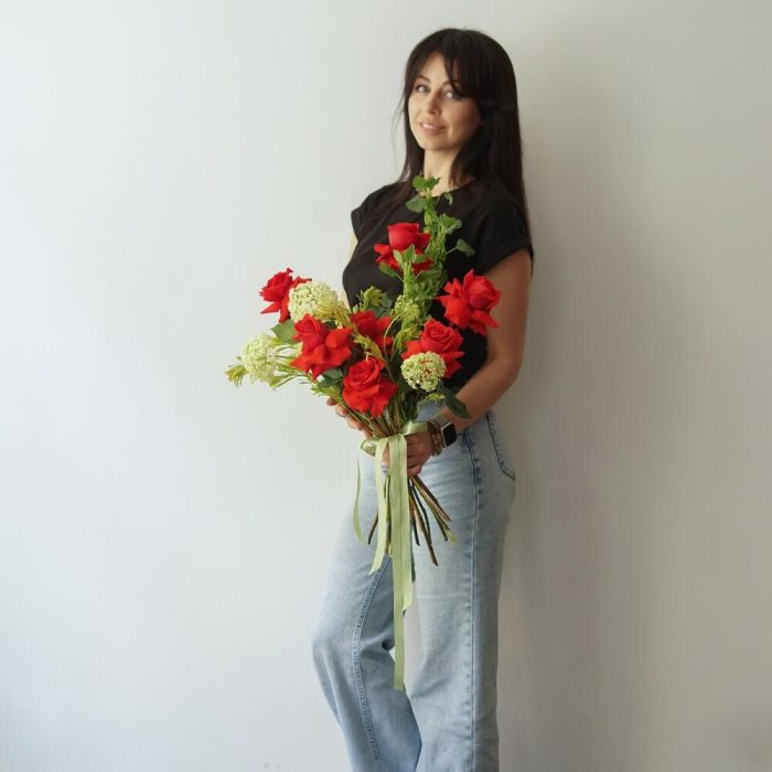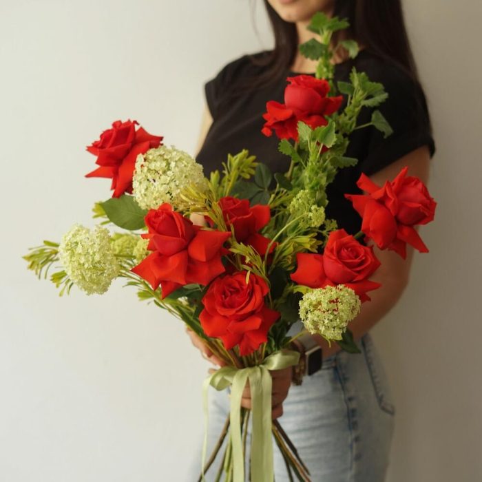 Хотите подарить что-то особенное и романтичное? Наш букет из красных роз сорта Нина, ароматного вибурнума и нежной мюлющеллы идеально подойдет для этого! Красота и изысканность этого букета не оставят равнодушной ни одну женскую душу. Это идеальный подарок для тех, кто … Показать ещёлюбит прекрасное и ценит традиции. Порадуйте своих близких и близких сердцу людей – подарите им наш удивительный букет!