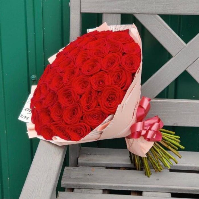 розы 51 штука красные – 51 шт.Упаковка дизайнерская – 2 шт.Лента атласная – 1 шт.