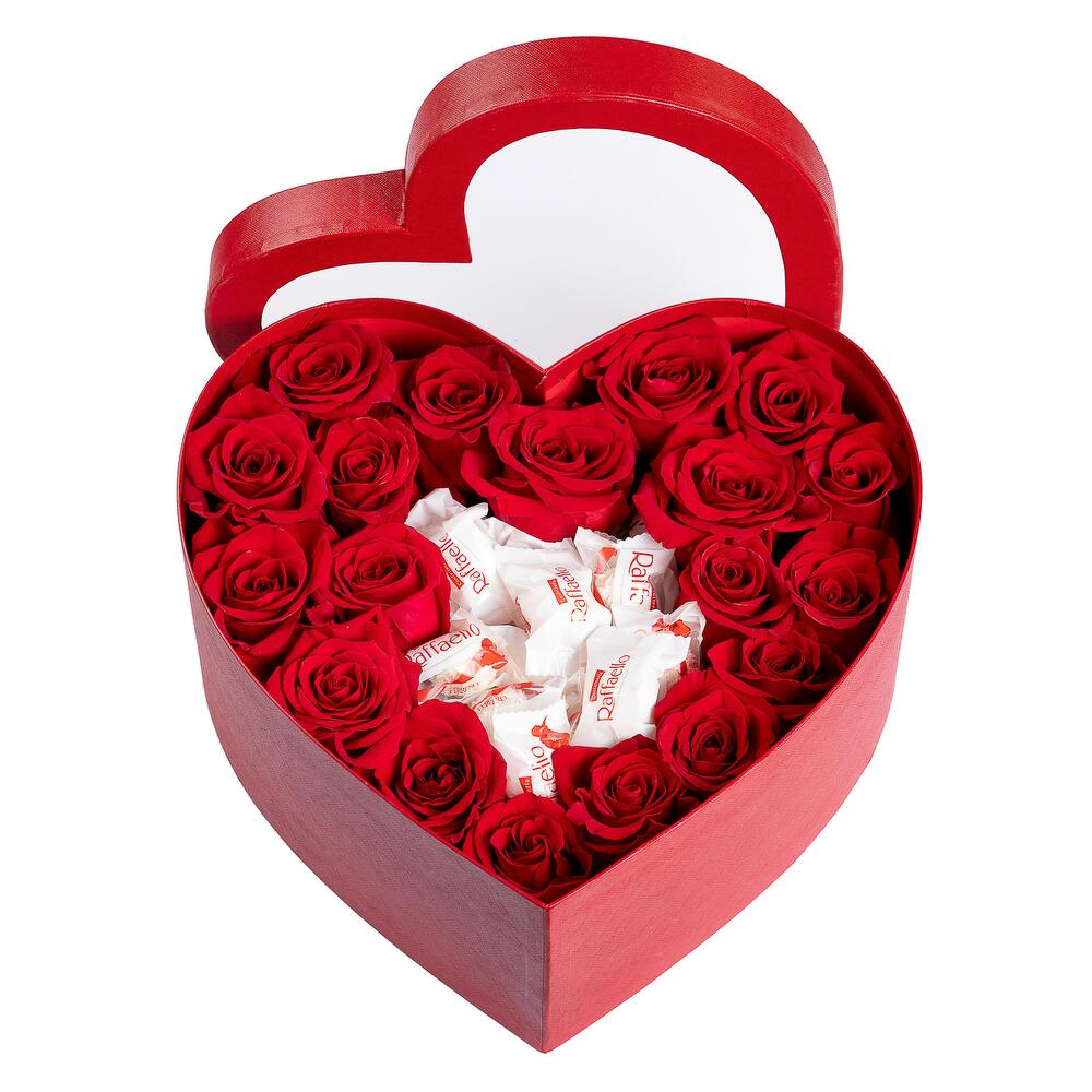 Бумага тишью – 2 шт.конфеты раффаэлло – 15 шт.кирпич oasis классик – 1 шт.роза одноголовая красный – 19 шт.Коробка – 1 шт.Сердце – 1 шт.