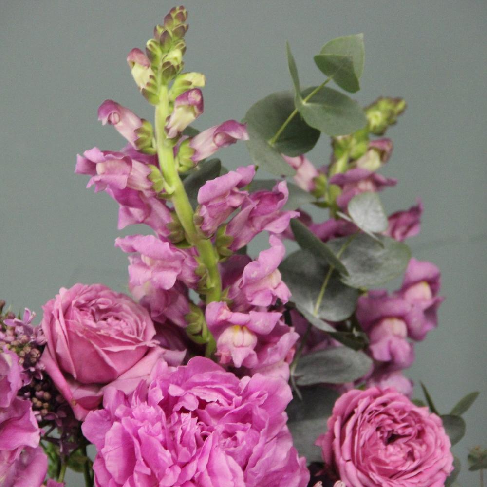 Букет с сиренью, пионами, львиным зевом, пионовидными розами и эвкалиптом.Отличный выбор для подарка на день всех влюблённых, 14 февраля.
