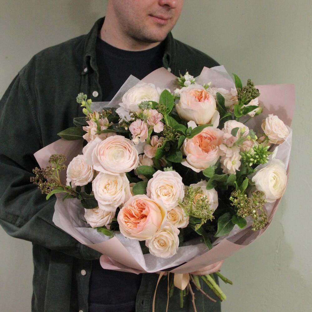 Вечерний сад - Букет с ранункулюсами и пионовидными розами