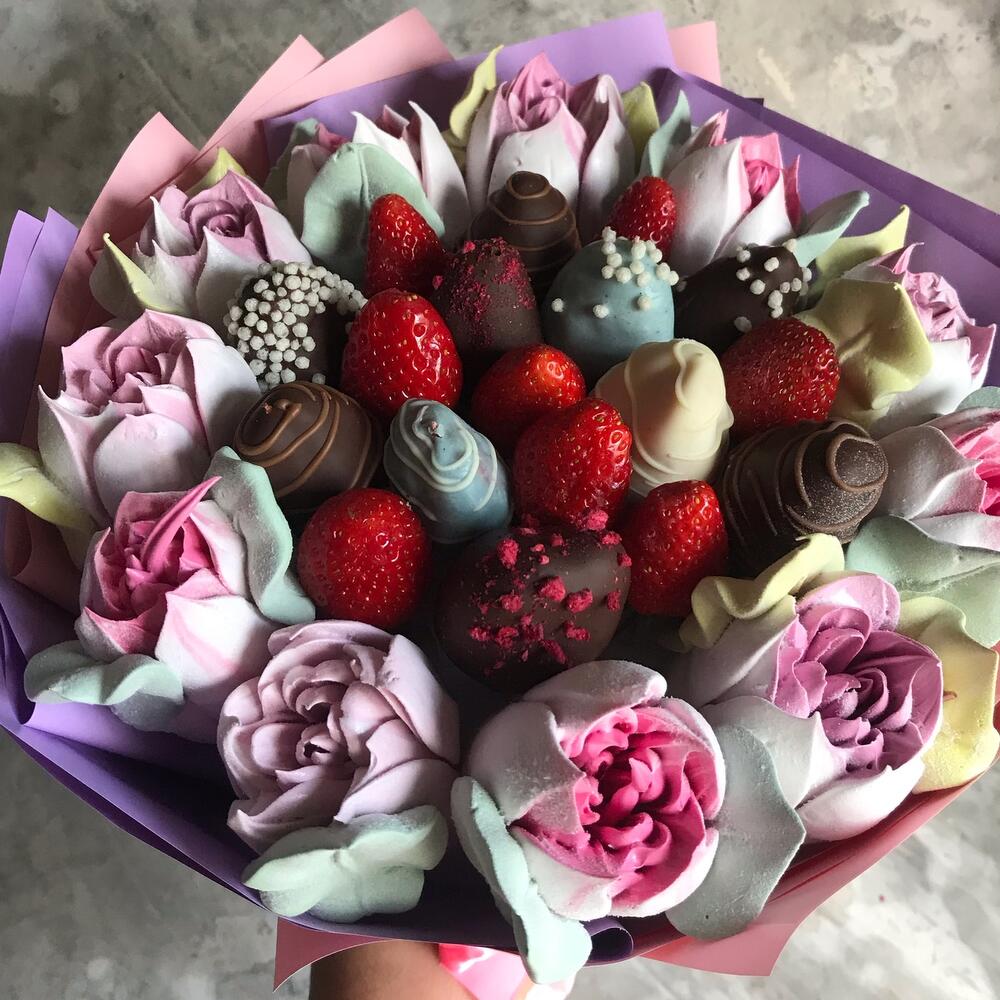 зефирные цветы – 11 шт.Клубника в шоколаде – 300 шт.