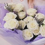 белые розы – 15 шт.Лаванда пучок – 1 шт.Упаковка дизайнерская – 1 шт.