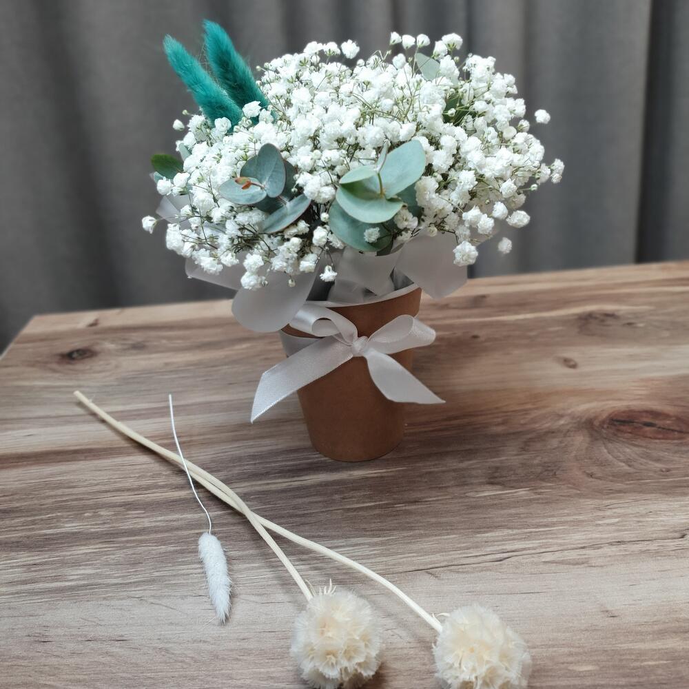Гипсофила – 3 шт.Эвкалипт пучок – 1 шт.Лагурус – 2 шт.кофейный стакан – 1 шт.Оазис флористический – 1 шт.Упаковка – 120 шт.