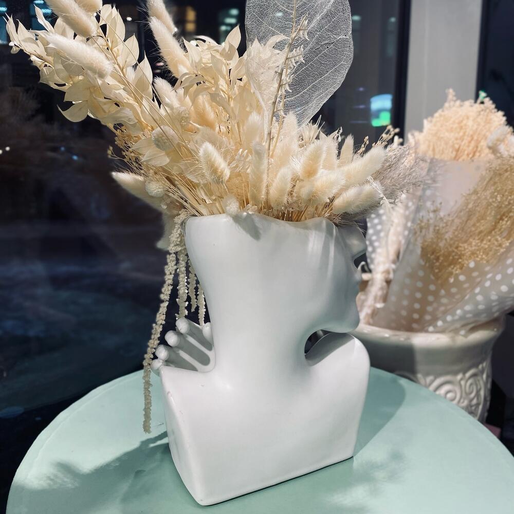 Композиция из сухоцветов в керамической голове