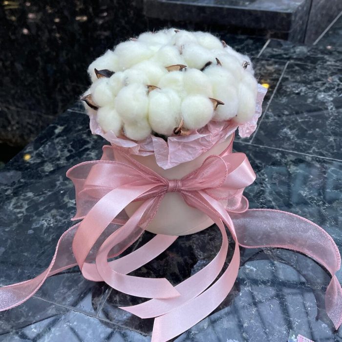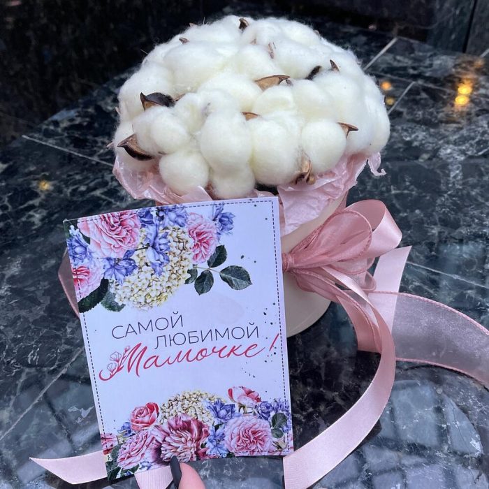 “Атлас☁️” – цветочная композиция с зефиром в деревянном ящике