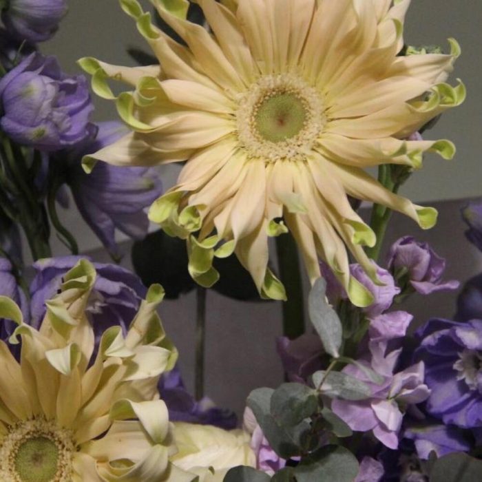 Кудрявые герберы и дельфиниум