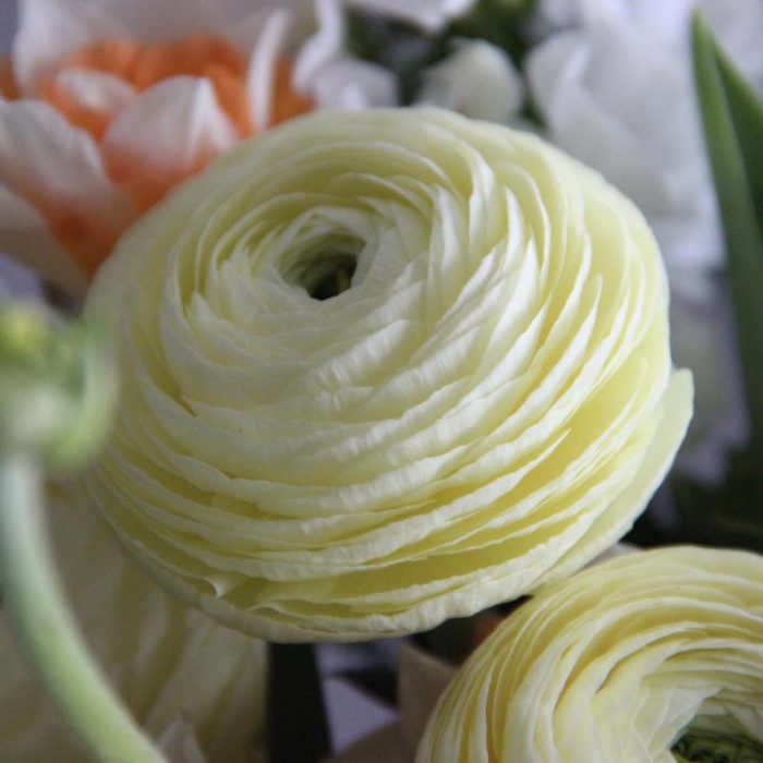 Мимоза – 2 шт.Ранункулюс – 3 шт.Нарцисс – 7 шт.Сирень – 2 шт.Маттиола – 2 шт.Львиный зев – 3 шт.Флокс – 2 шт.Тюльпан – 5 шт.Эвкалипт – 6 шт.Эвкалипт стабилизированный – 1 шт.Лента атласная – 2 шт.